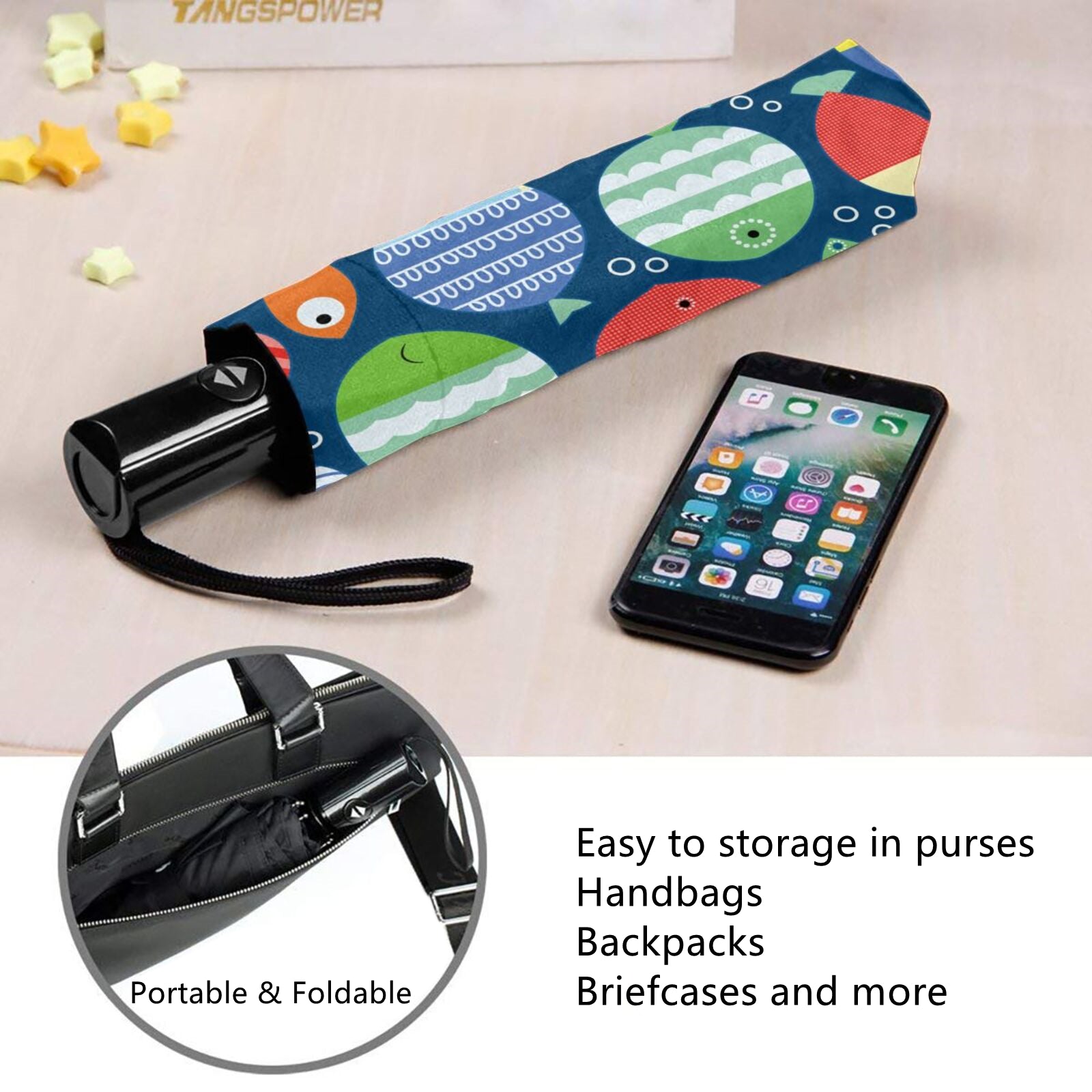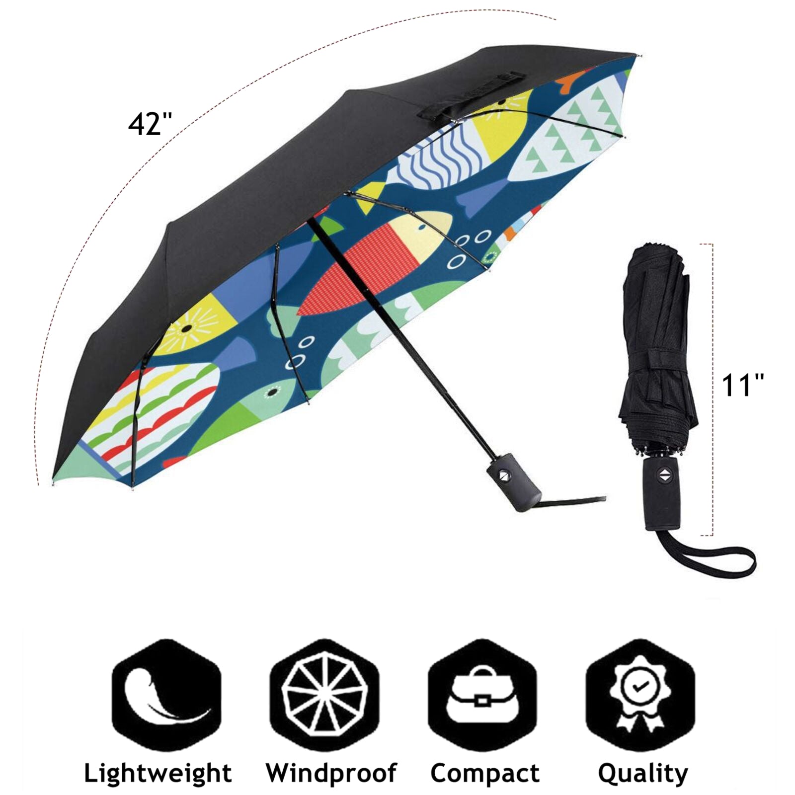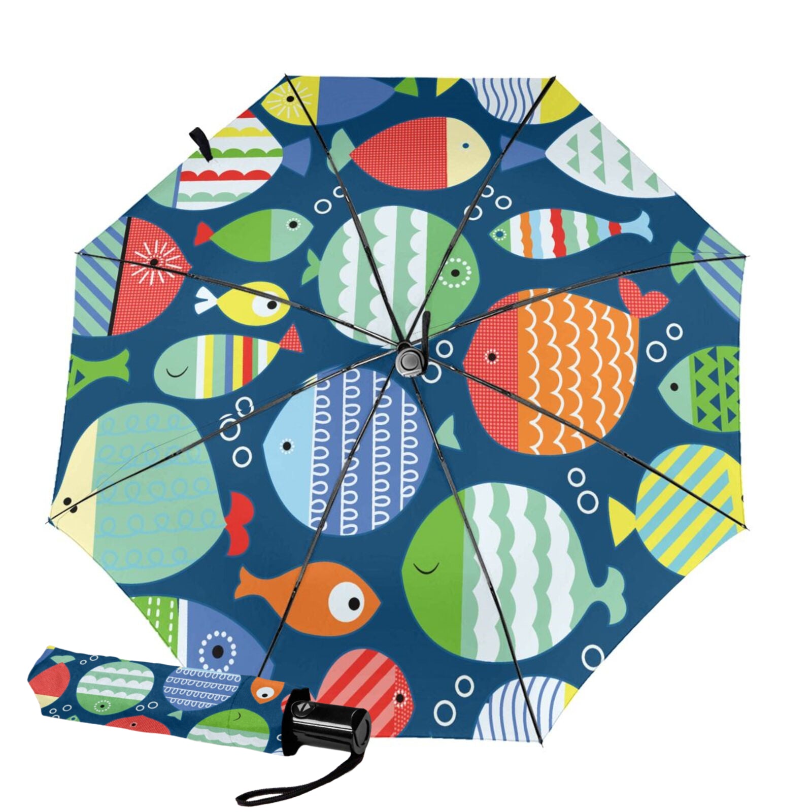 - Dieser bedruckte, faltbare Regenschirm ist auf der Innenseite des Schirmdachs mit einem niedlichen Fischmuster bedruckt.