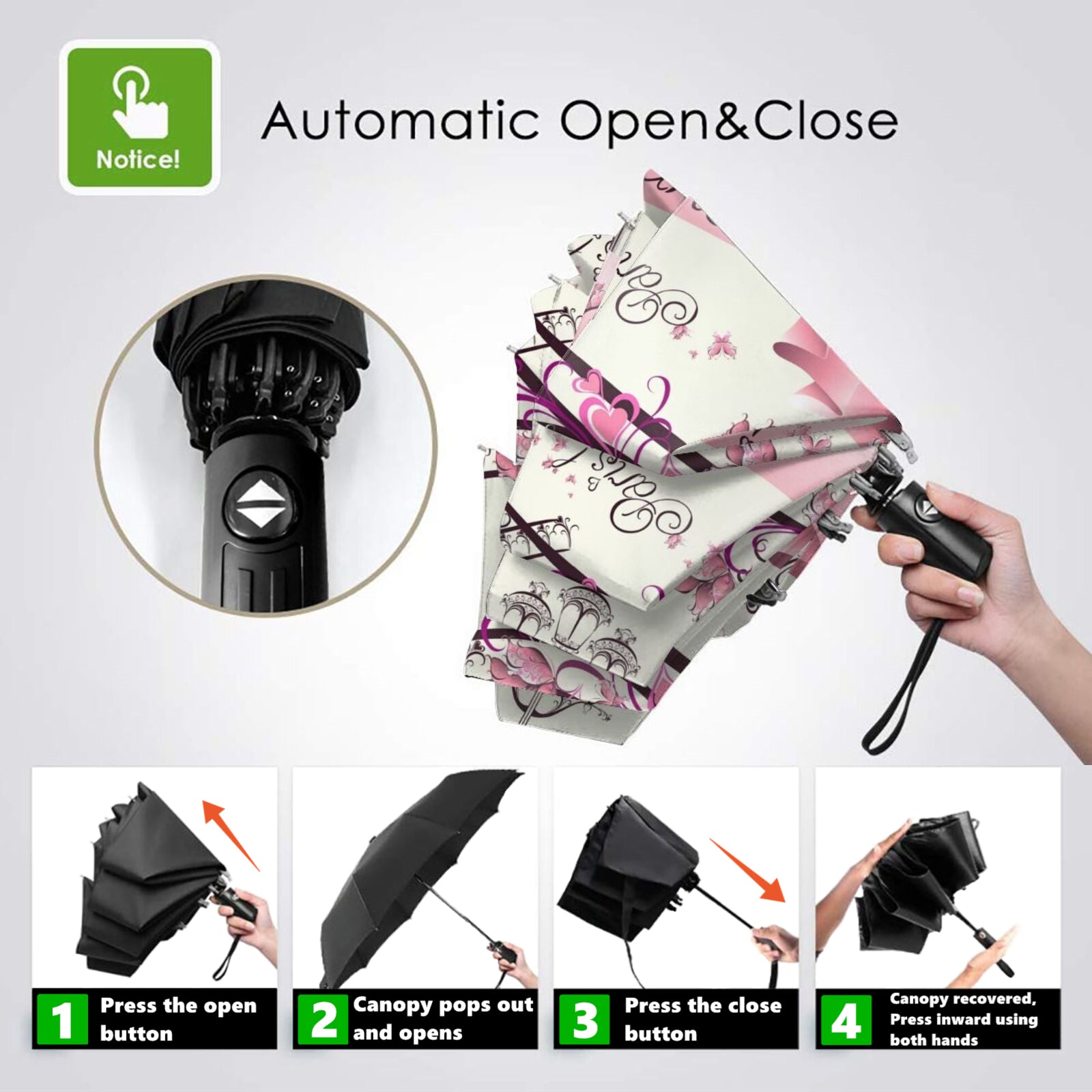 - Dies ist ein superhochwertiger und multifunktionaler Taschenschirm mit automatischem Öffnen und Schließen, der sich sowohl für den Einsatz an sonnigen als auch an regnerischen Tagen eignet.