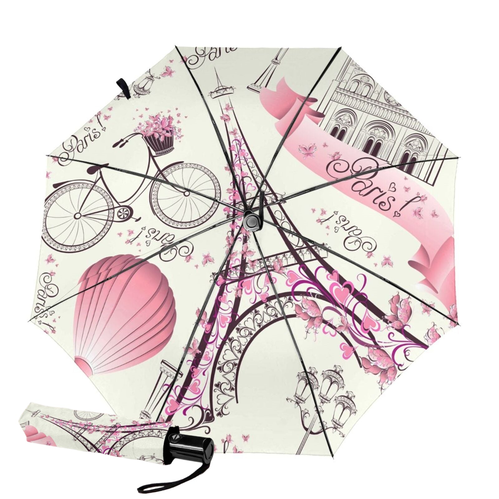 - Dieser bedruckte faltbare Regenschirm ist auf der Innenseite des Schirmdachs mit einem klassischen, modischen Pariser Designmuster bedruckt.