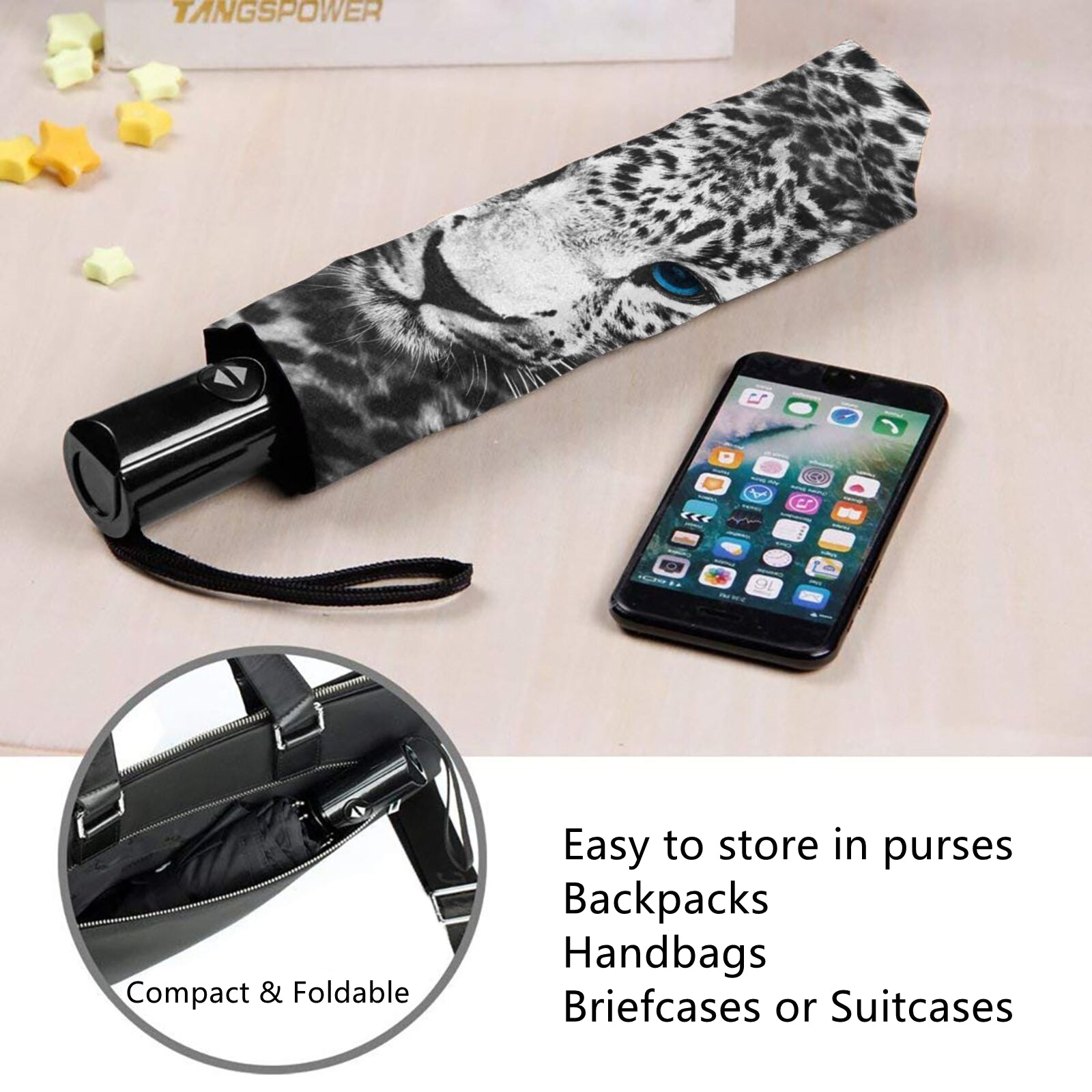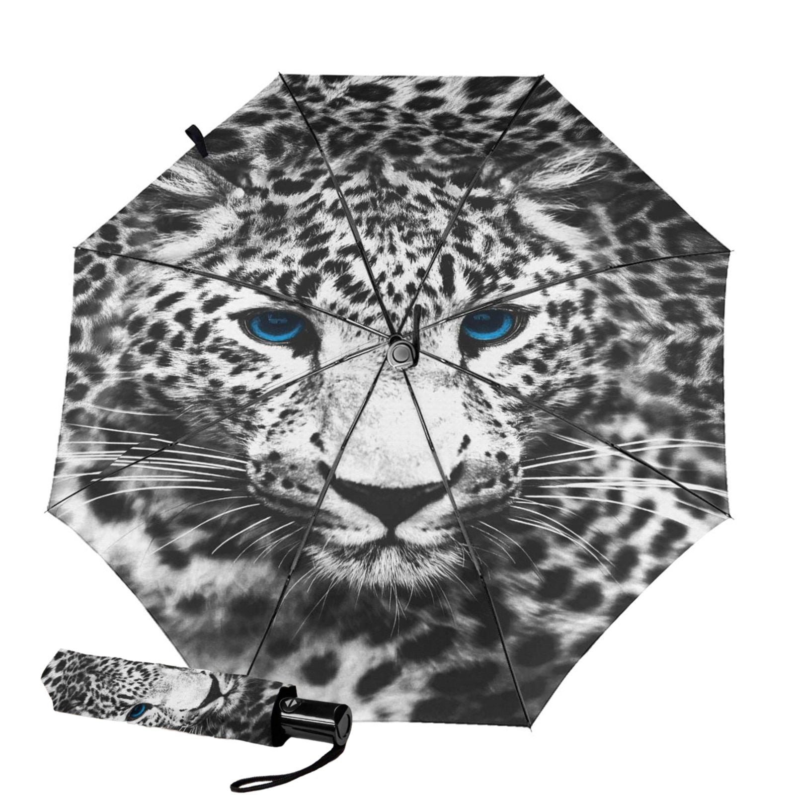 - Dieser bedruckte, faltbare Regenschirm ist auf der Innenseite des Schirmdachs mit einem klassischen Schneeleoparden-Muster bedruckt.