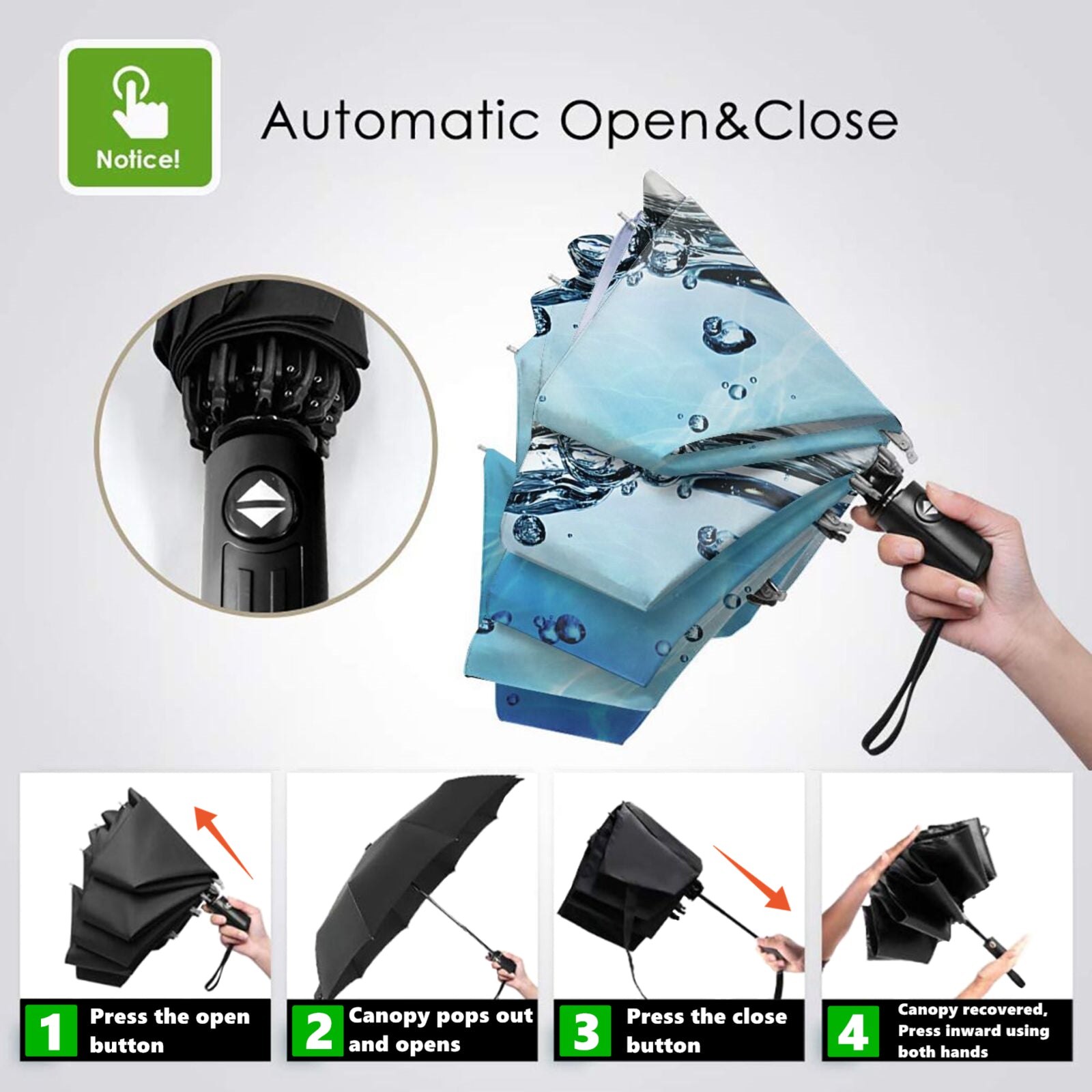 - Il s'agit d'un parapluie pliant automatique multifonctionnel de très haute qualité qui s'ouvre et se ferme automatiquement et qui convient à une utilisation aussi bien par temps ensoleillé que pluvieux.