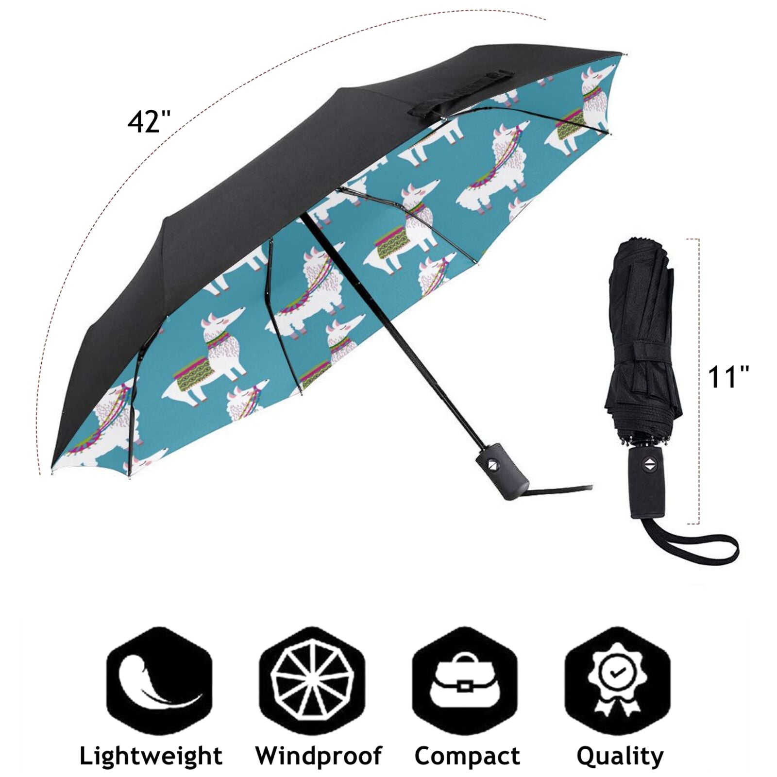 - Ce parapluie pliable imprimé est imprimé avec un magnifique motif d'alpaga à l'intérieur de la canopée.