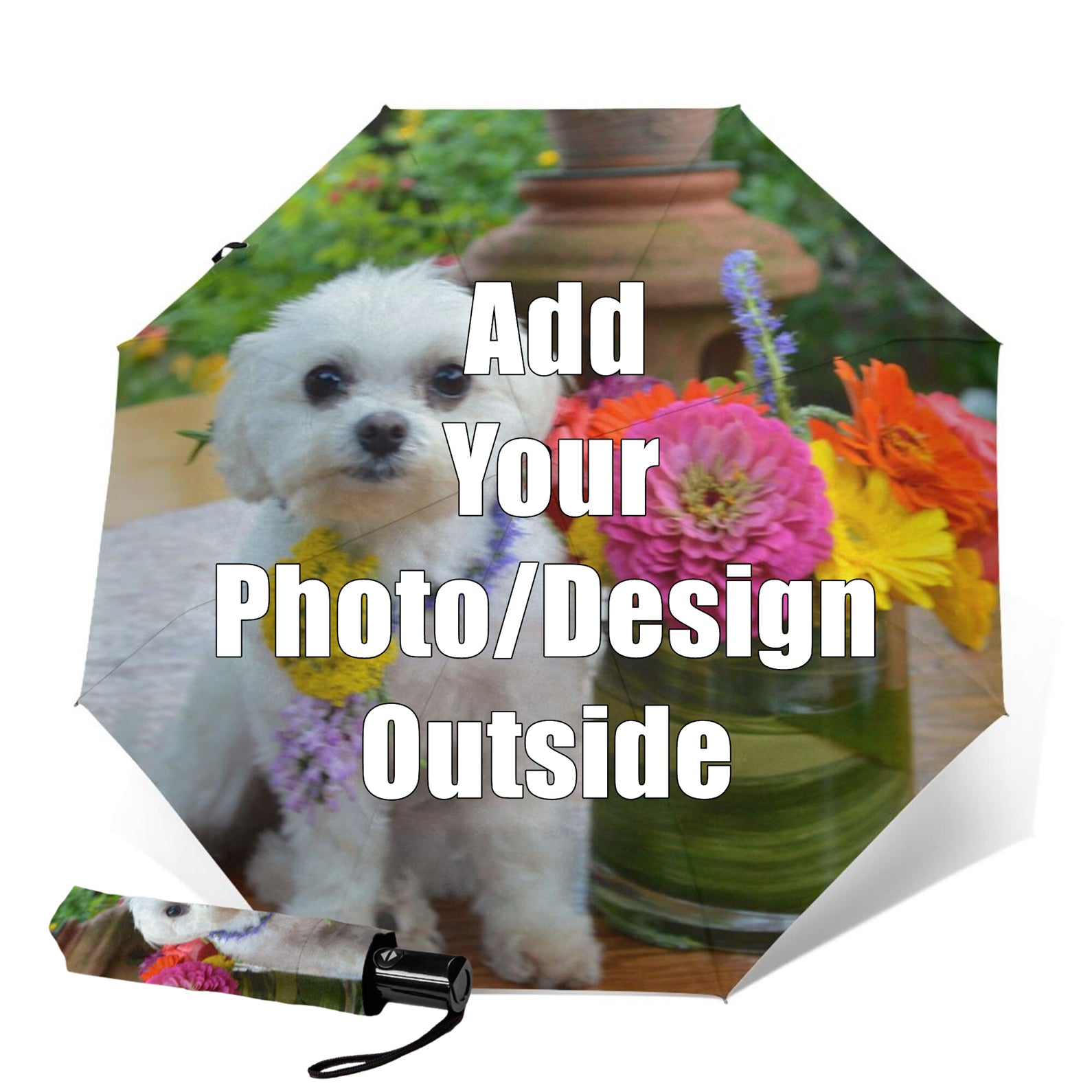 - High quality custom folding umbrella, your own photo, design or logo will be customized to print on the OUTSIDE of canopy, as photo shows. Image with 2000x2000 pixels(1:1 Ratio) and above can get better printing results.