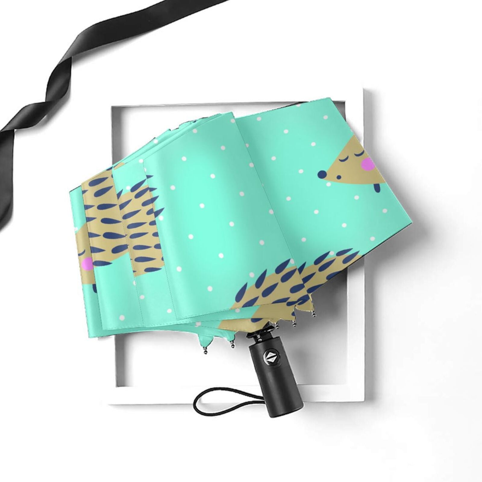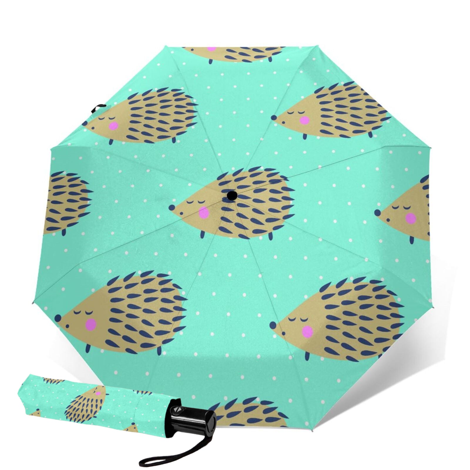 - This foldable umbrella is printed with a cute hedgehog pattern design on the outside of canopy.
