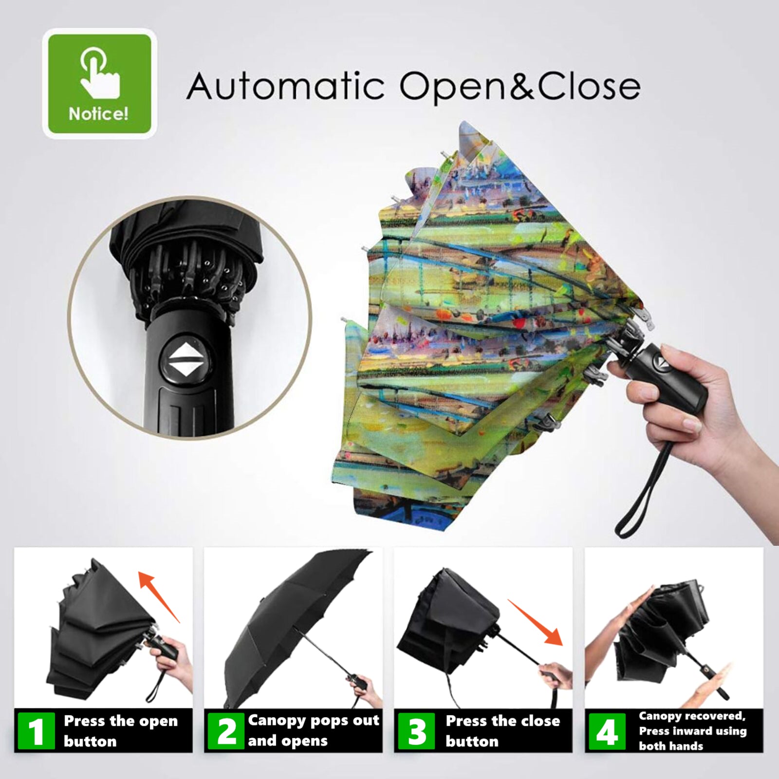 - This is a super high quality and multi-purpose automatic open and close folding umbrella that is suitable for use in both sunny and rainy days.