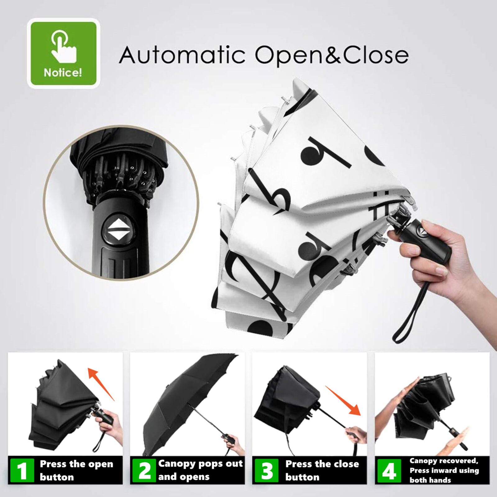 Automatic Open Close Small Compact Umbrella With Music Note Inside
