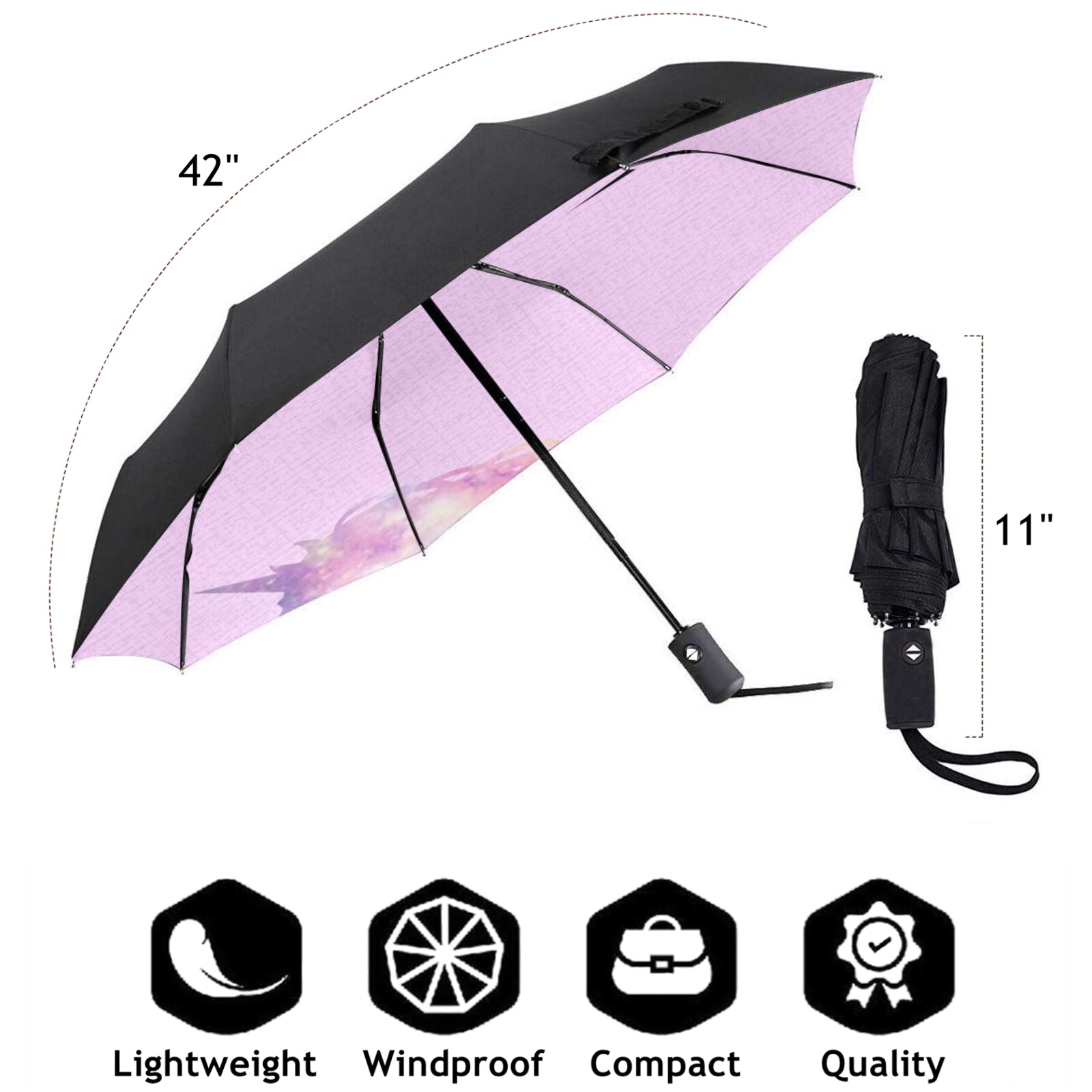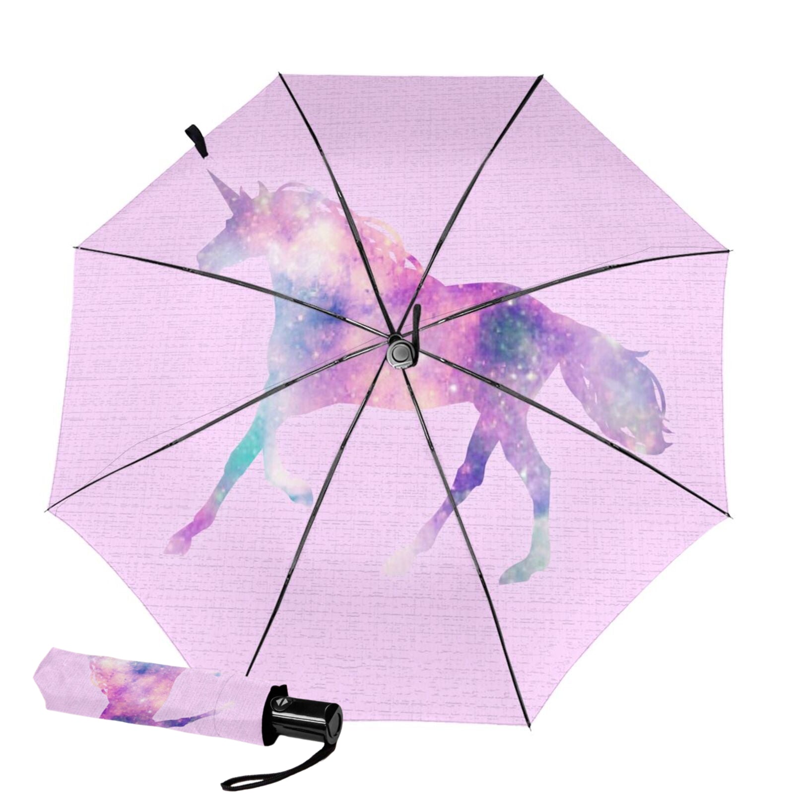 - This printed foldable umbrella is printed with a classic color changing unicorn design pattern on the interior of canopy.