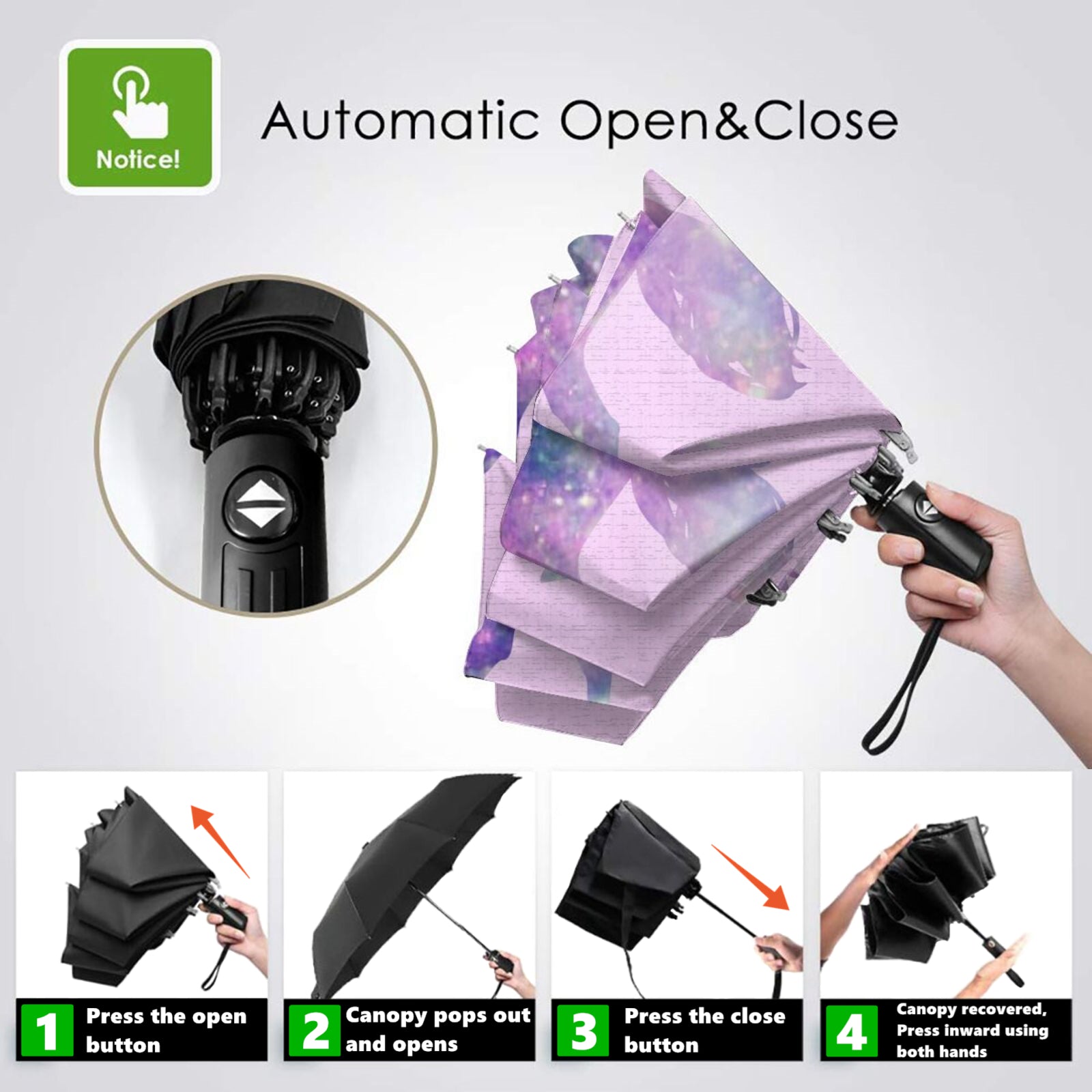 - This is a super high quality and multifunction automatic open and close folding umbrella that is suitable for use in both sunny and rainy days.